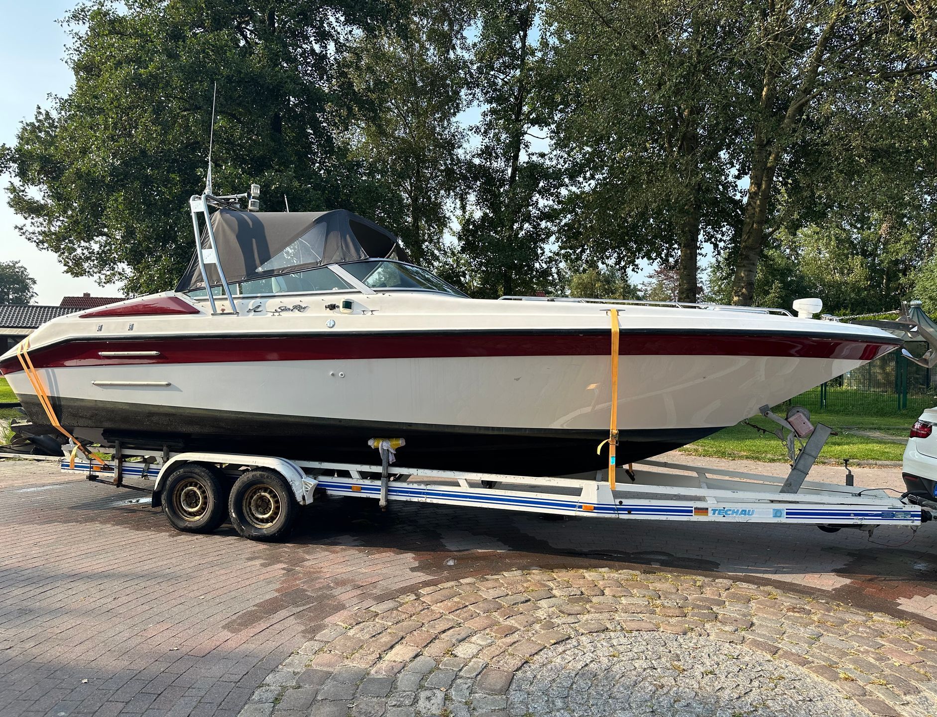 Cabin boat SeaRay Pachange 27 Offshore with 2 x V6 VW Marine Diesel engines in top condition, with trailer. The boat is uniquely fully equipped.
